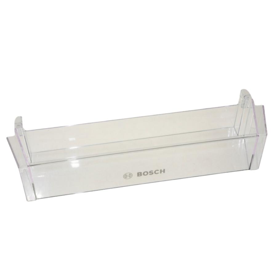 Bosch Siemens refrigerator lower door shelf is a genuine spare part designed for the lowest position in Bosch and Siemens refrigerator doors. This durable and transparent shelf adds extra storage space for bottles, jars, and other refrigerator items.