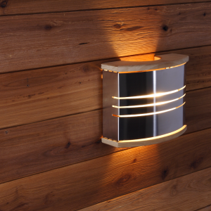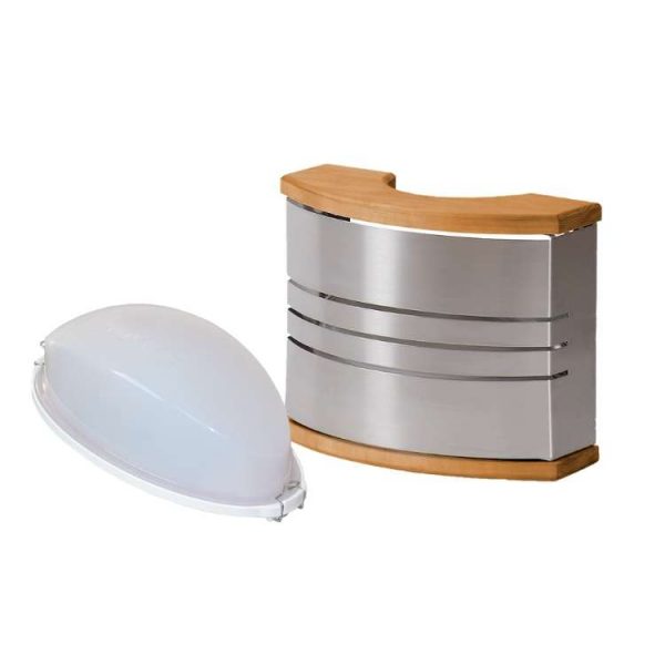 The stylish sauna lamp combines steel and wood. Dimensions 230 x 180 mm (width x height). Package includes both lamp and shade.