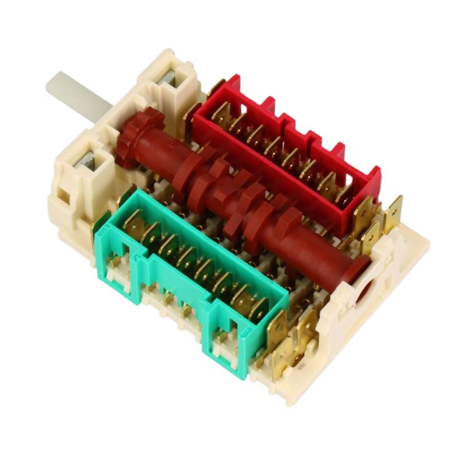 Kytkin on AC-tyyppinen ja liitäntä tapahtuu AMP Faston 6,3 mm -kytkennällä. Akselin halkaisija on 6 mm ja pituus 18 mm. Alkuperäinen uunikytkin tarjoaa hyvän istuvuuden ja vastaa valmistajan teknisiä vaatimuksia.