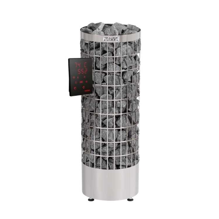 Harvia Cilindro XW Steel sähkökiuas on tyylikäs ja näyttävä pilarikiuas, joka suuren kivimäärän kanssa luo saunaan pehmeät löylyt. Kiukaan korkea muotoilu luo saunaan näyttävyyttä ja se myös mahdollistaa erilaisten saunasisustusten ja -asennusten toteuttamisen. Kiuasta ohjataan erillisellä Xenio Wifi ohjauspaneelilla, joten kiukaan saa päälle juuri silloin kuin haluat.
