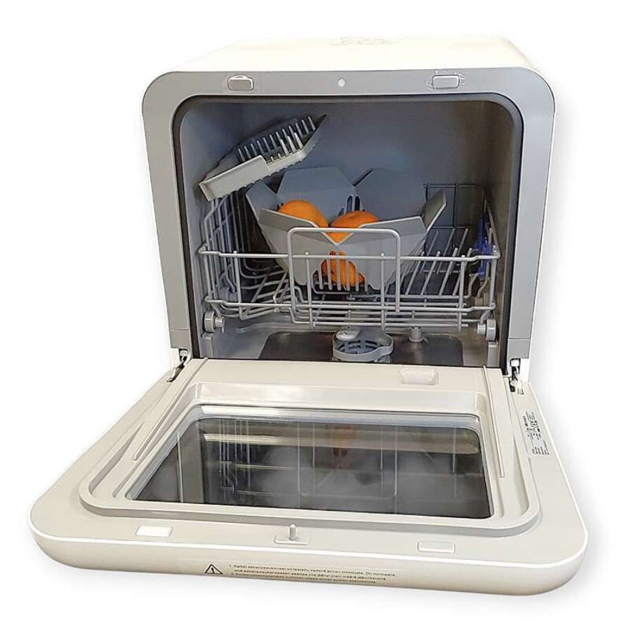 Moderni läpinäkyvä luukku samppanjanvärisellä reunuksella tuo koneeseen elegantin ilmeen. LED-näyttö näyttää jäljellä olevan pesuajan ja ohjelman. Tilaa riittää kahden hengen astiastolle, ja neljä pesuohjelmaa tarjoavat tehokkaan ja joustavan puhdistuksen. 29 minuutin pikapesu on arjen pelastus, kun taas ECO-ohjelma säästää vettä ja energiaa. Lisäksi erikoisohjelmat sopivat tuttipulloille ja hedelmille.